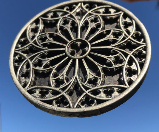 Gothic Cathedral Window Ornament, Pewter Finish | Unique Gothic Home Decor | Resin Medieval Architecture, Gothic Ornament Holiday Decor
