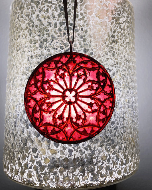 Gothic Cathedral Window Ornament, Translucent Red | Unique Gothic Home Decor | Resin Medieval Architecture, Gothic Ornament Holiday Decor