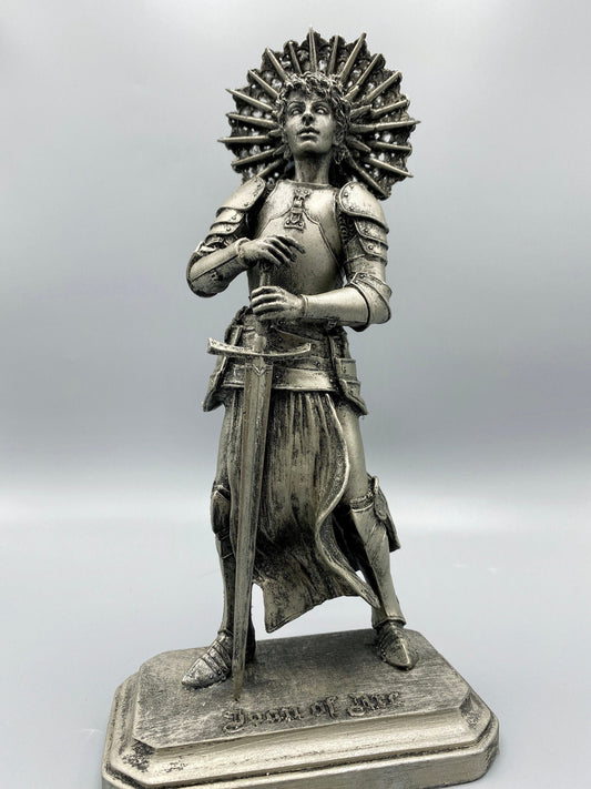 Joan of Arc Statue, Hand Painted Resin Sculpture | Medieval Warrior Saint Figurine | Feminist Icon Decor