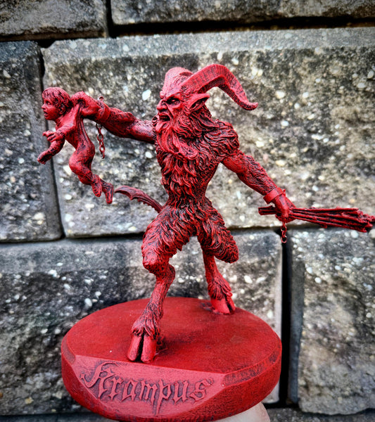 Krampus III Statue, Hand Painted Resin Sculpture, Red Finish |Mythical Creature Figurine |Unique Dark Christmas Demon, Gothic Folklore Decor