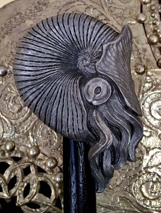 Nautilus Ammonite Cane, Hand Sculpted Walking Stick | Nautical Fossil Cane | Fantasy Natural History Cane, Maritime Gothic Accessory