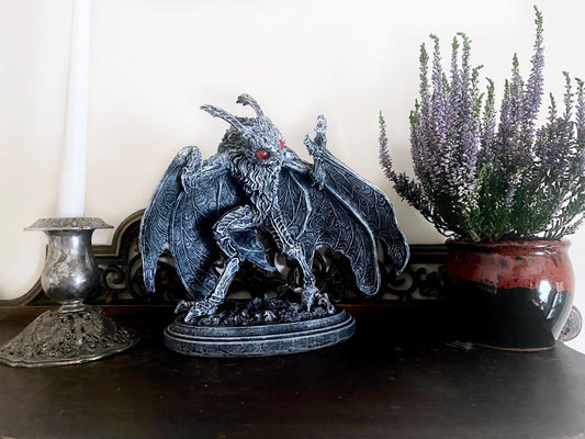 Mothman Statue, Hand Painted Resin Sculpture | Cryptozoology Creature Figurine | Urban Legend Moth Man Monster Figurine, Horror Art Decor