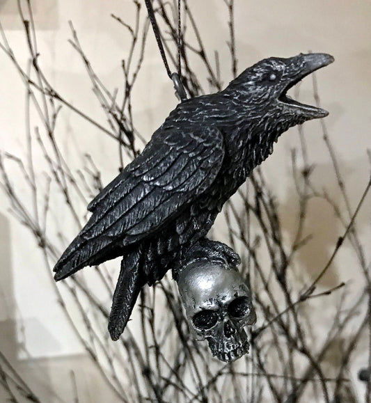 Raven Perched on Skull Ornament | Unique Gothic Home Decor | Resin Sculpture Poe's Raven, Literary Ornament Gift and Gothic Holiday Decor