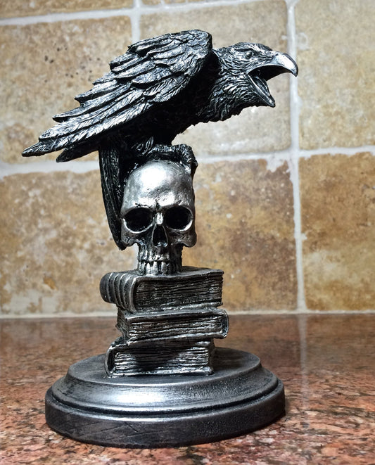Raven Statue, Hand Painted Resin Sculpture | Poe’s Raven Gothic Halloween Figurine | Literary Gift and Spooky Home Decor