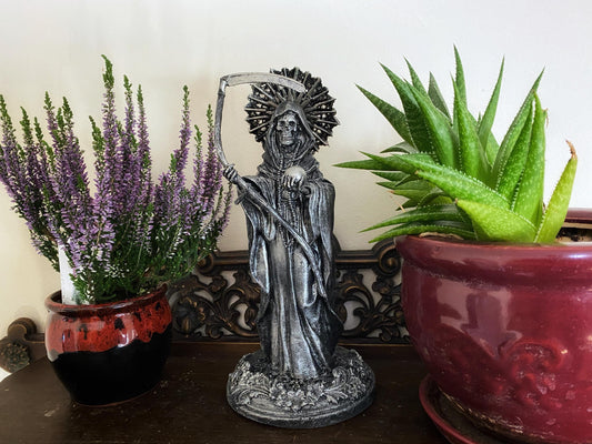 Santa Muerte Statue, Hand Painted Sculpture | Mexican Saint of Death Altar Statue | Gothic Figurine, Dia de los Muertos Decor
