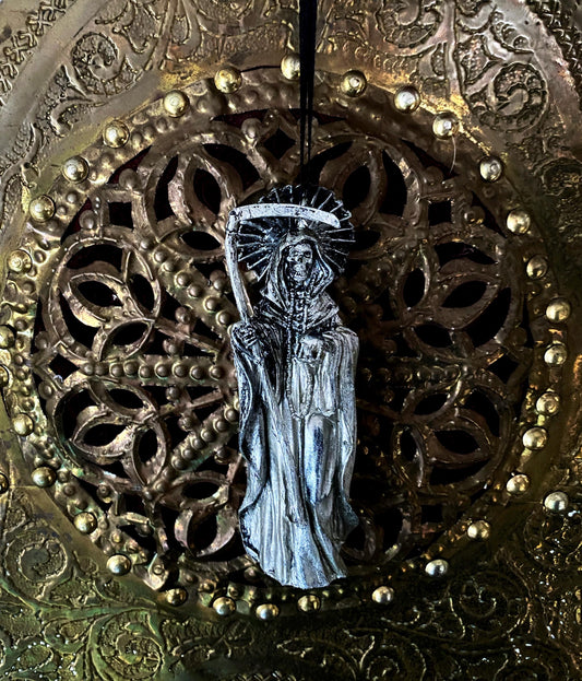 Santa Muerte Ornament, Hand Painted Sculpture | Mexican Saint of Death Altar Figurine | Gothic Ornament, Dia de los Muertos Holiday Decor
