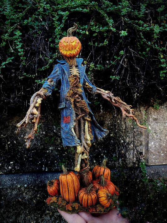 Scarecrow Ornament, Hand Painted Resin Sculpture | Gothic Halloween Nightmare Creature Figurine | Dark Folklore Art for Spooky Holiday Decor