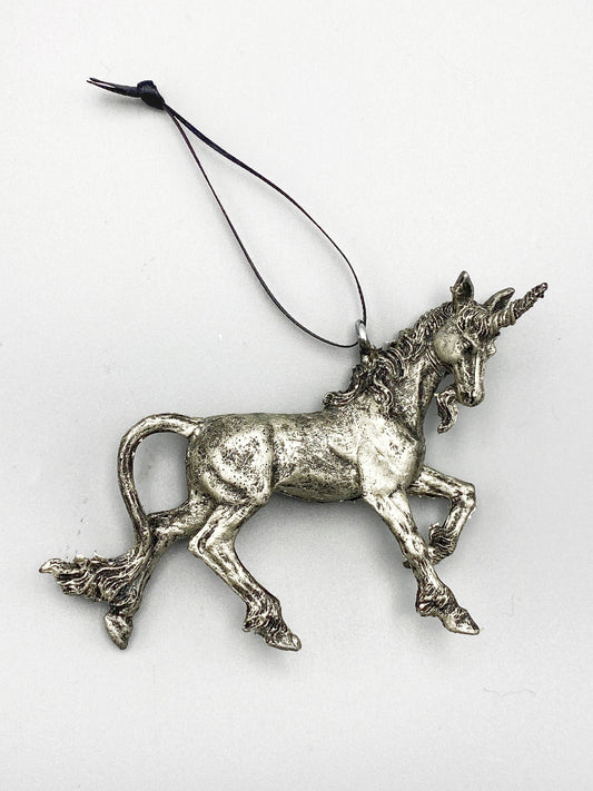 Unicorn Ornament, Hand Painted Resin Sculpture | Mythical Creature Figurine | Unique Legendary Beast Ornament. Fantasy Holiday Decor