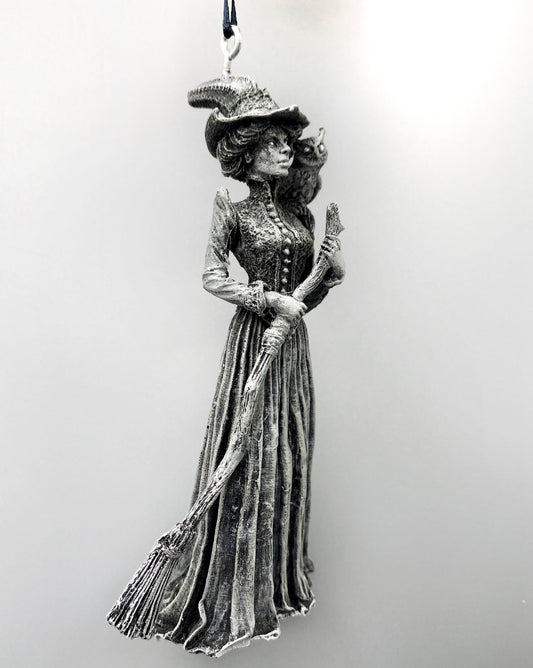 Victorian Witch Ornament, Hand Painted Resin Sculpture | Gothic VictorianFolklore Figurine |Christmas Witch Pagan Ornament for Holiday Decor