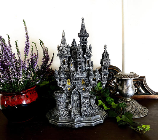 Castle Dracula, Gothic Hand Painted Resin Sculpture with LED Tea Light |Vampire Lair Gothic Statue |Gift for Gamers and Spooky Home Decor