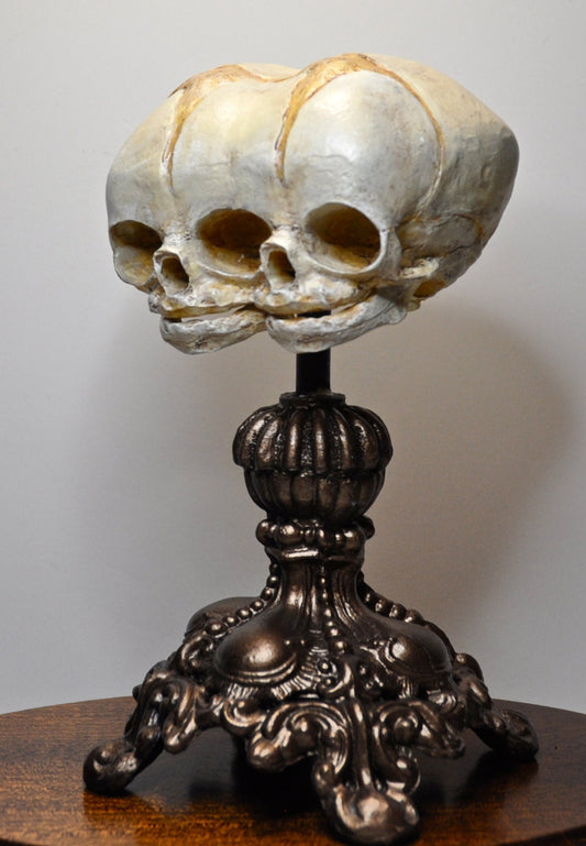 Conjoined Twins Fetal Skull Ornament, Resin Sculpture | Gothic Fantasy Skull Figurine |Conjoined Skull Ornament for Fantasy and Gothic Decor