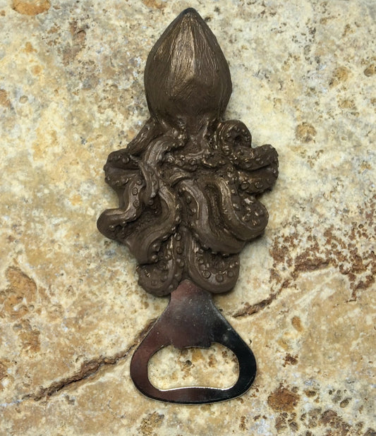 Kraken Octopus Bottle Opener, Hand Painted Resin | Gothic Nautical Barware, Octopus Bottle Opener | Fantasy Gothic Beer and Barware Gift