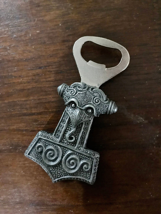 Thor's Hammer Bottle Opener, Hand Painted Resin | Medieval Norse Barware, Mjolnir Viking Bottle Opener | Fantasy Gothic Barware Gift