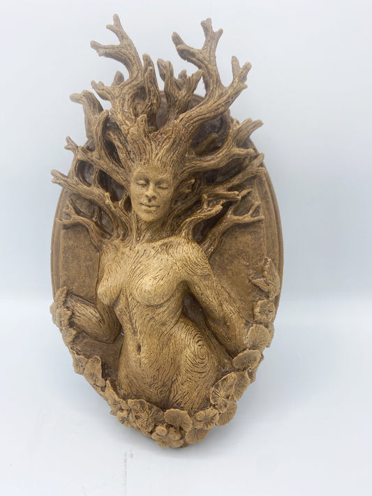 Dryad Wall Plaque, Hand Painted Resin Sculpture | Mythic Forest Creature Wall Art | Woodland Goddess Wall Plaque for Nature Lovers