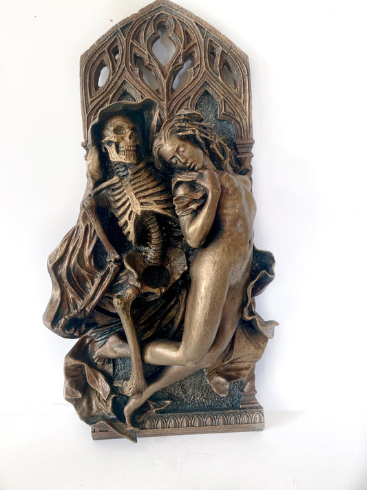 Death and the Maiden Wall Plaque, Hand Painted Resin Sculpture | Gothic Medieval Wall Art | Classical Death Statue for Gothic Home Decor