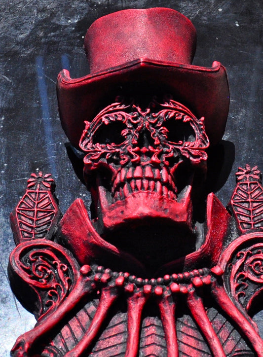Baron Samedi Wall Plaque, Hand Painted Resin Sculpture | Voodoo Gothic Wall Art | Spooky Samedi Skull Plaque for Gothic Home Decor