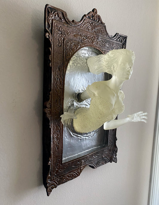 Ghost in the Mirror Wall Plaque, Glow in the Dark Large Version |Victorian Gothic Haunted Wall Art |Gift for Halloween and Spooky Home Decor