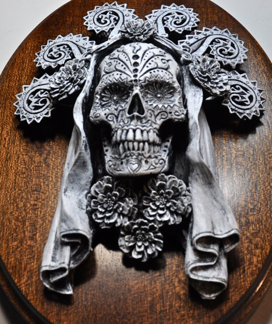 Dia de los Muertos Wall Plaque, Hand Painted Resin | Mexican Gothic Wall Art | Spooky Day of the Dead Skull Plaque for Gothic Home Decor