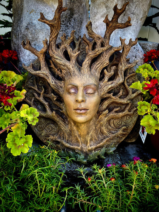 Dryad Bust, Life Sized Wall Plaque Resin Sculpture | Mythic Forest Creature Wall Art | Woodland Goddess Wall Plaque for Nature Lovers