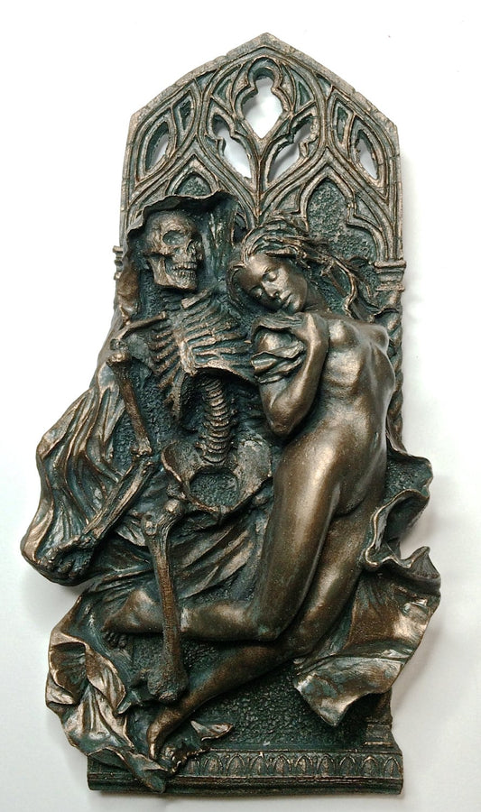 Death and the Maiden Wall Plaque, Half Scale Resin Sculpture | Gothic Medieval Wall Art | Classical Death Statue for Gothic Home Decor