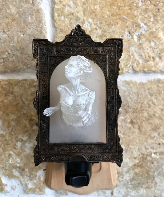 Ghost in the Mirror Nightlight, Hand Painted Resin Sculpture | Victorian Gothic Night Light | Ghost Lighting for Gothic Spooky Home Decor