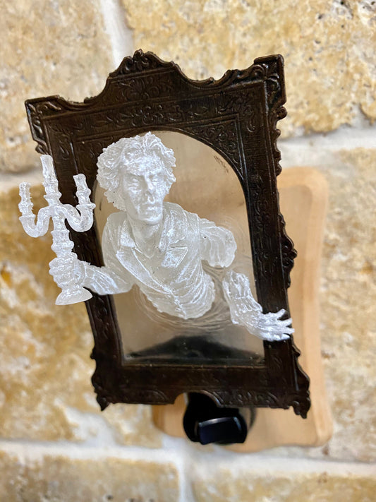 Gentleman Ghost in the Mirror Nightlight, Resin Sculpture | Victorian Gothic Night Light | Ghost Lighting for Gothic Spooky Home Decor