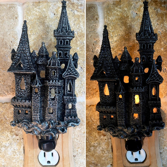Medieval Castle Nightlight, Hand Painted Resin Sculpture | Victorian Gothic Night Light | Castle Lighting for Gothic Fantasy Home Decor