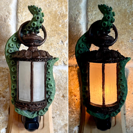 Tentacle Lantern Nightlight, Hand Painted Resin Sculpture | Nautical Gothic Night Light | Octopus Kraken Lighting for Fantasy Home Decor