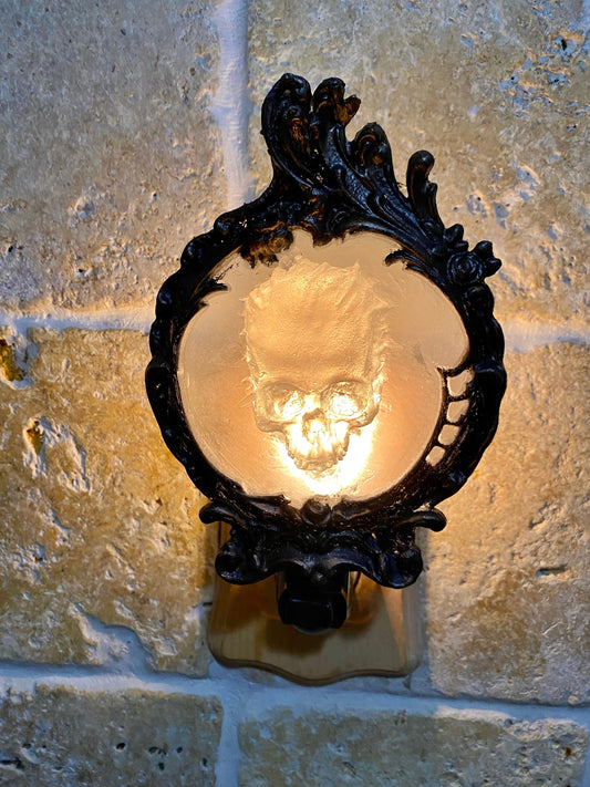 Spectral Skull Nightlight, Hand Painted Resin Sculpture | Victorian Gothic Night Light | Ghost Skull Lighting for Gothic Fantasy Home Decor