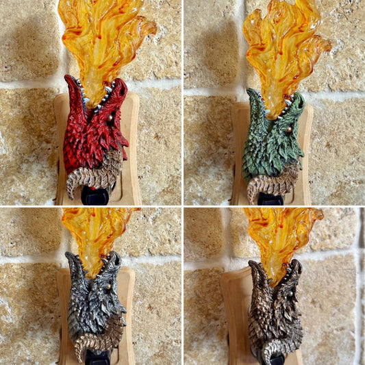 Fire Breathing Dragon Nightlight, Hand Painted Resin Sculpture | Fantasy Dragon Night Light | Mythic Legends Lighting for Fantasy Home Decor