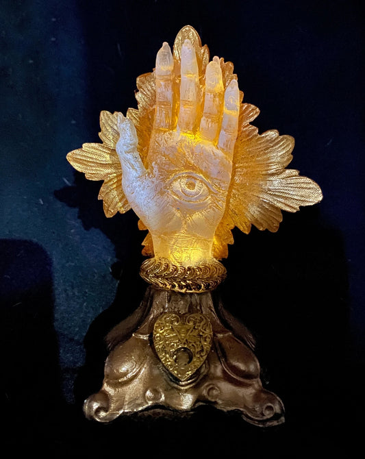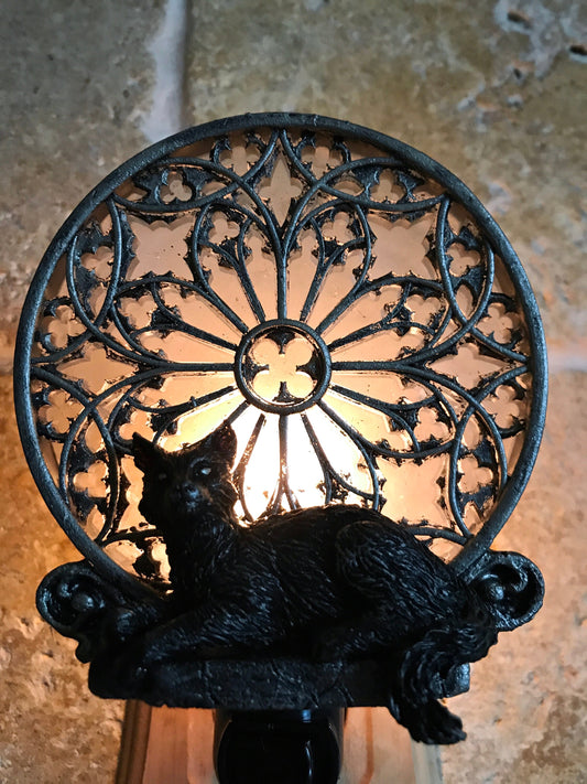 Cat and Gothic Cathedral Window Nightlight, Resin Sculpture | Medieval Gothic Night Light | Black Cat Lighting for Gothic Fantasy Home Decor
