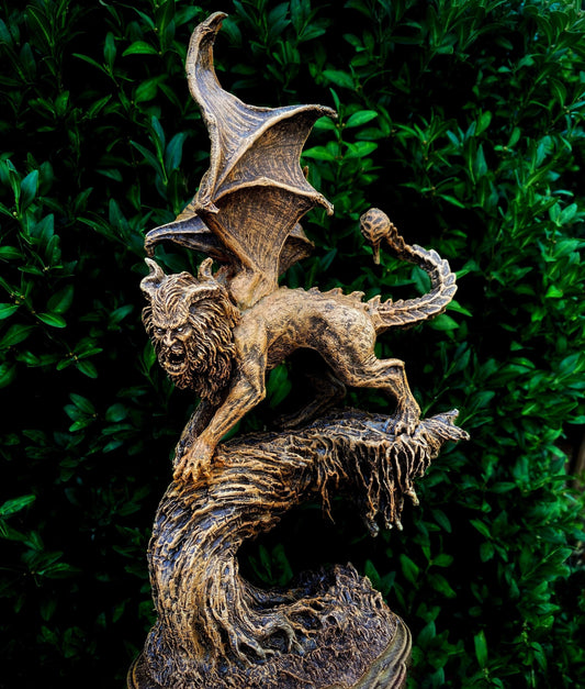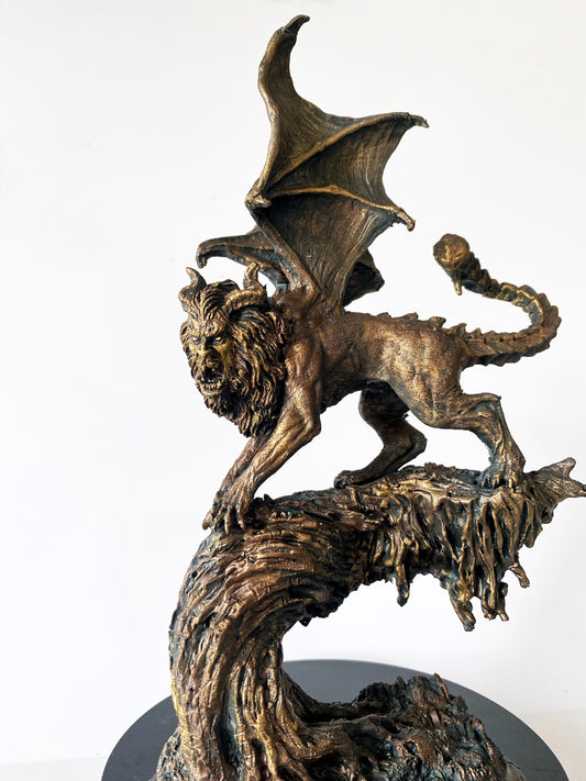 Manticore Statue, Hand Painted Resin Sculpture | Mythical Creature Figurine | Unique Legendary Manticore Monster Figurine. Fantasy Art Gift