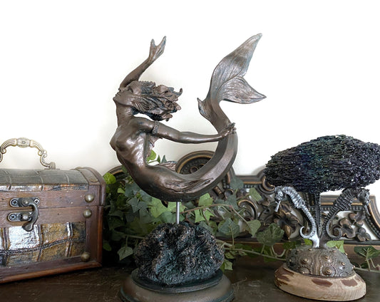 Mermaid Statue, Hand Painted Resin Sculpture, Bronze Finish| Mythical Creature Figurine| Unique Legendary Mermaid Figurine Fantasy Art Decor