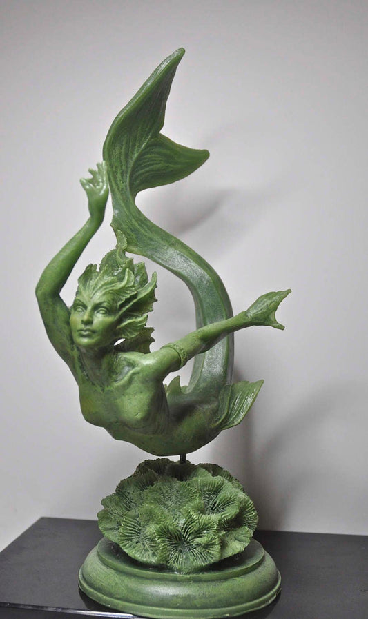 Mermaid Statue, Hand Painted Resin Sculpture, Jade Finish| Mythical Creature Figurine| Unique Legendary Mermaid Figurine Fantasy Art Decor