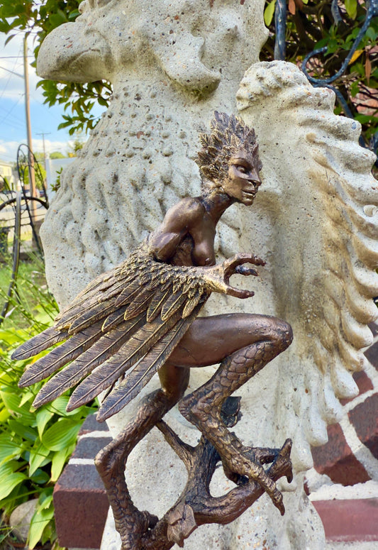 Harpy Statue, Hand Painted Resin Sculpture | Mythical Creature Figurine | Unique Legendary Bird Woman Figurine. Fantasy Art Decor