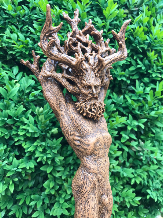Green Man/ Cernunnos Hand Painted Resin Sculpture | Mythical Forest Creature Figurine | 15” Woodland God Altar Statue for Nature Lovers