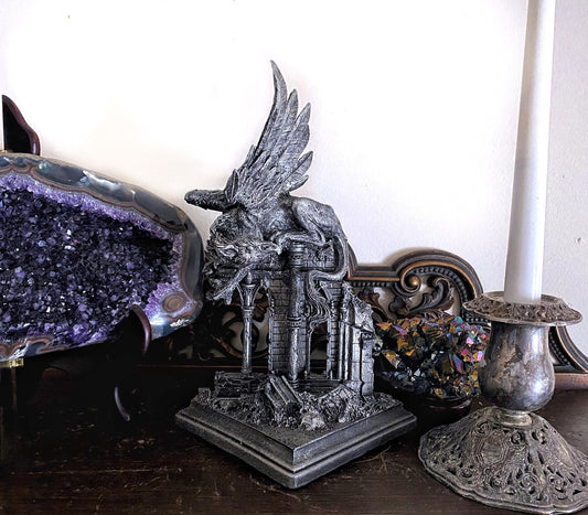 Griffin Statue, Hand Painted Resin Sculpture | Mythical Creature Figurine | Unique Legendary Guardian Spirit Figurine. Fantasy Art Decor