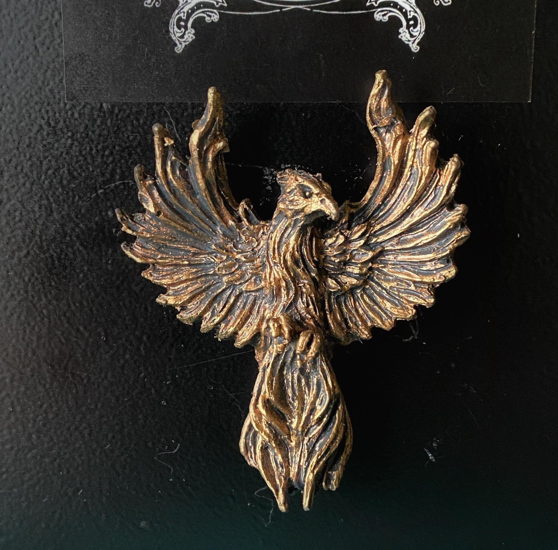 Phoenix Magnet, Hand Painted Resin Sculpture | Mythic Fantasy Decor | Phoenix Magnet for Fantasy and Gothic Decor