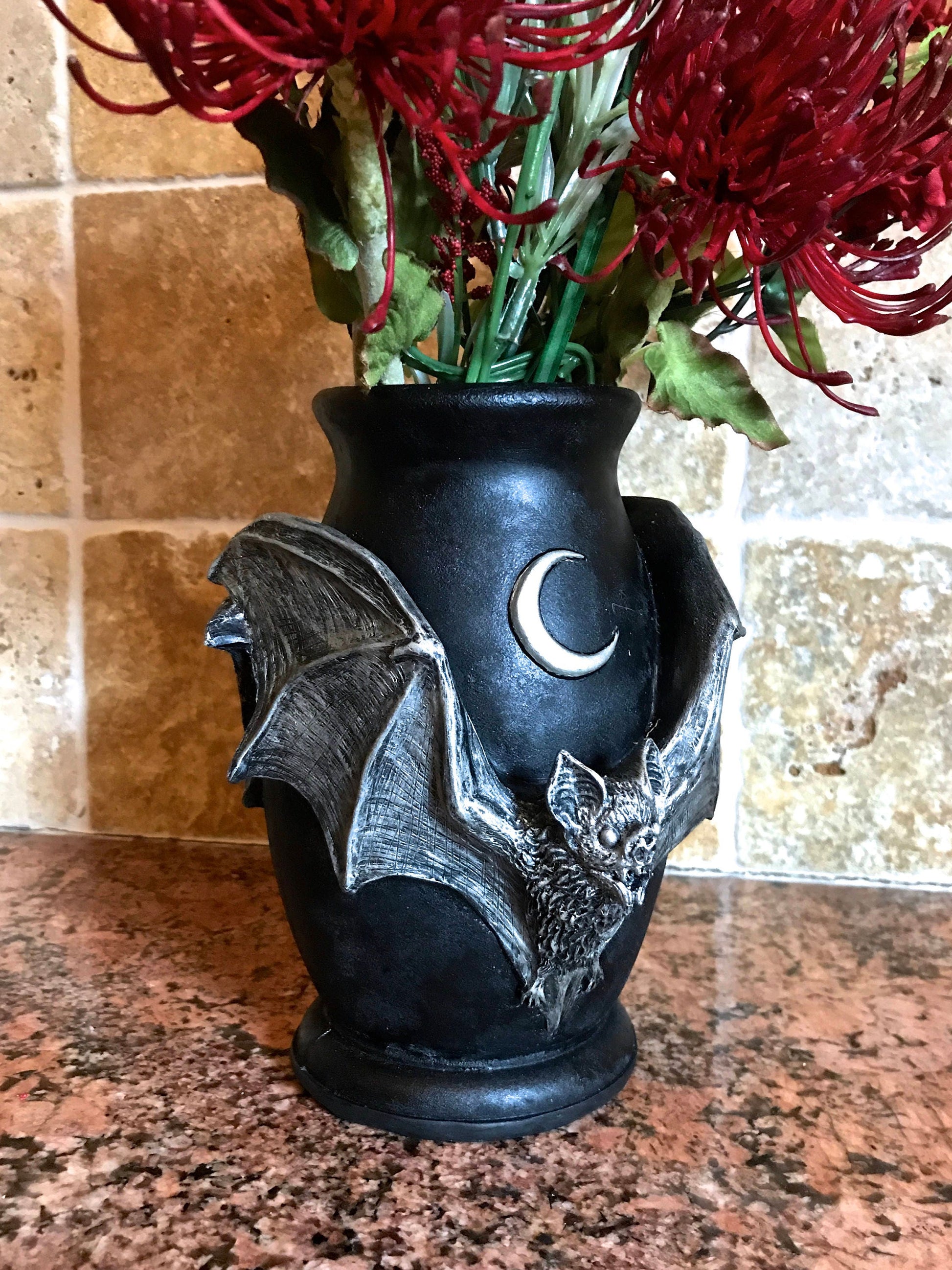 Vampire Bat Vase, Hand Painted Resin Sculpture | Unique Gothic Home Decor | Bat Vase Spooky Halloween Gift and Gothic Home Decor